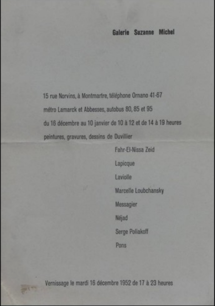 Carton d’invitation au vernissage de l’exposition collective du 16 décembre 1952